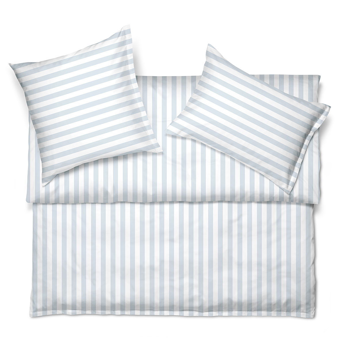 Das edle Satin Gewebe zeigt in den Farben marine, argent und beige ein edles Streifendesign.Das Bettwäsche-Design mit den Blockstreifen eine frische, elegante und maritime Leichtigkeit auf einem edlen Satingewebe aus 100% Baumwolle aus reiner BIO Baumwolle.